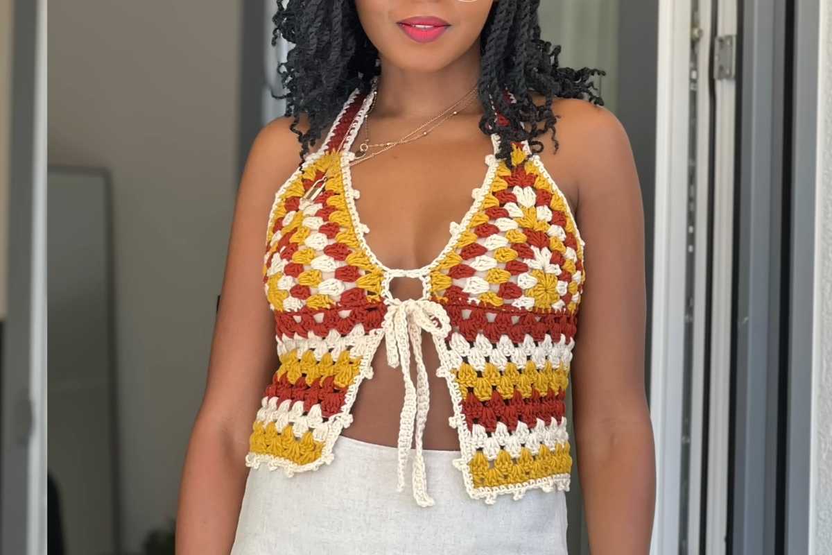 Granny clusters shine in smaller garments. This bralette offers flexible cups and a comfortable band, with plenty of room to customize straps and coverage—great news for crochet clothes for women who want personalized fit.