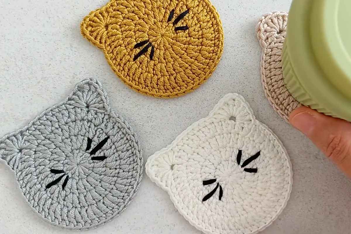 Whisker-cute and table-friendly, these minis are the definition of Cute Crochet Coasters. Stitch a circle, add ear triangles, then embroider a tiny face for a smile-inducing Crochet Coaster Set.