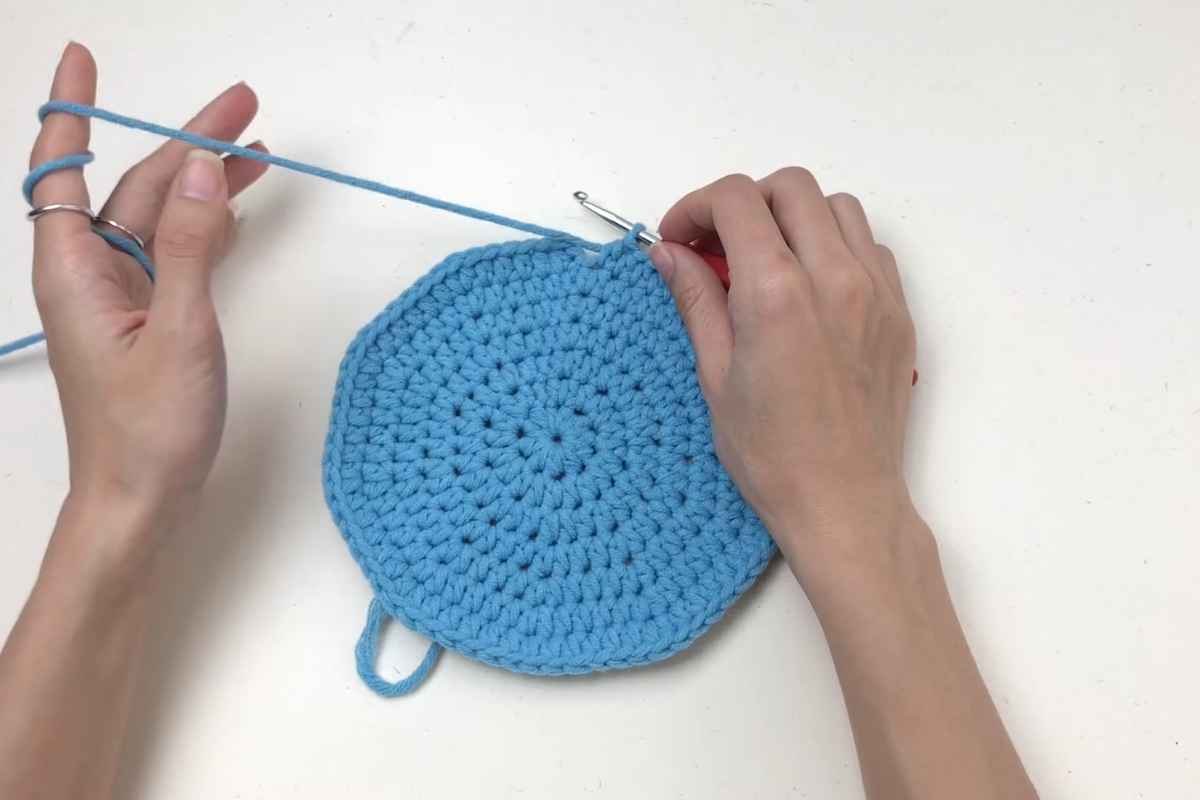 To form the sides, you will simply continue crocheting in the round without increasing. Use half double crochet (hdc) or double crochet (dc), depending on the desired texture and structure.