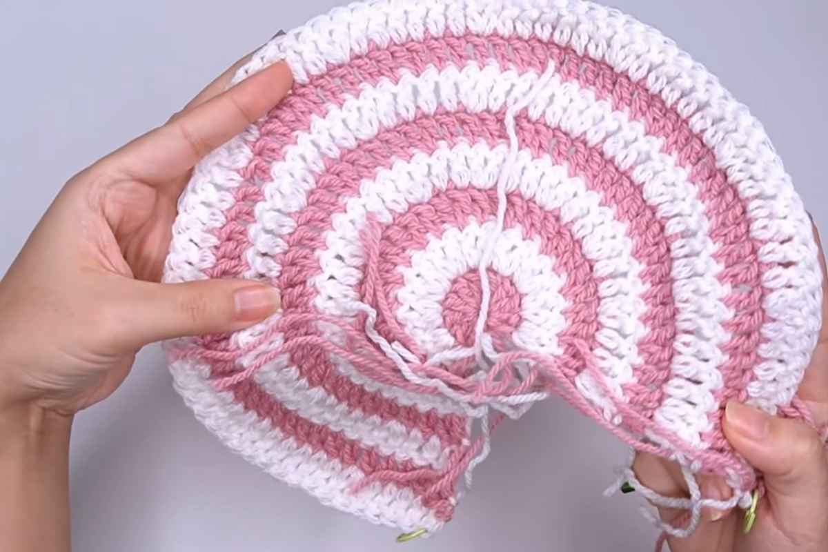 - Increase evenly in each round by adding stitches at set intervals. This creates a flat disc that will form the top of the hat.