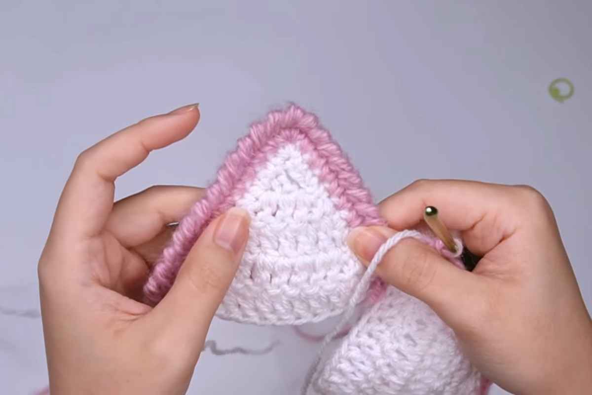 The real star of this project is the pair of triangular cat ears that sit neatly on top. They should be firm enough to hold their shape but still soft to the touch.