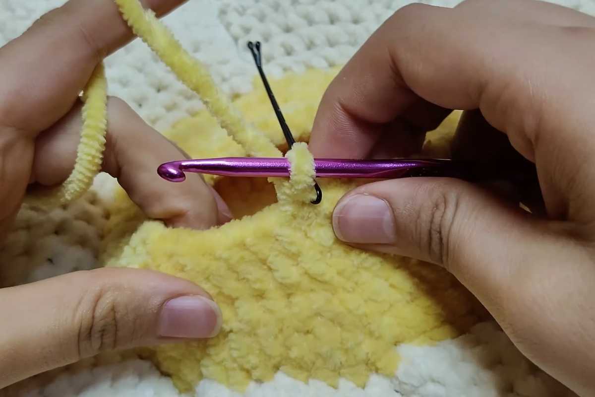 Bulky chenille or velvet yarns create cloud-soft petals; classic acrylic works if you prefer a firmer finish. Choose a hook that matches your yarn so the stuffing doesn’t show between stitches.