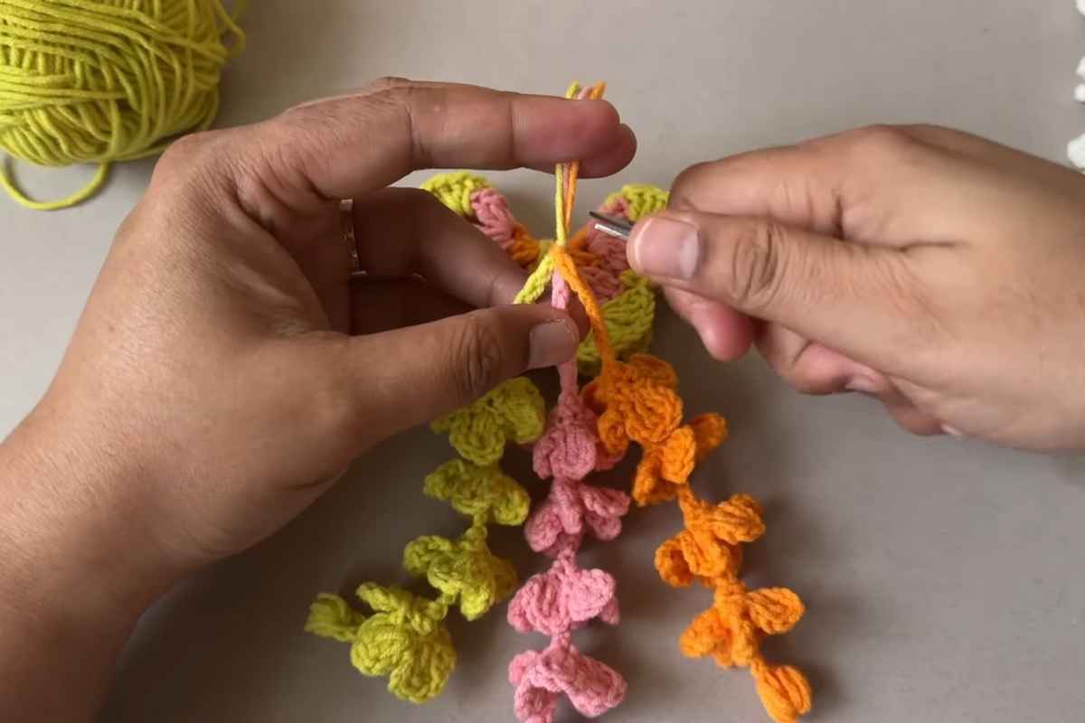 - Slip stitch back down the chains to give them a bit of weight.