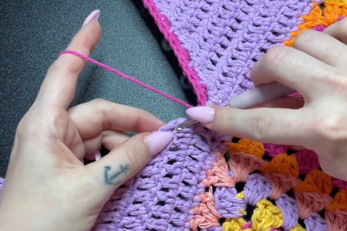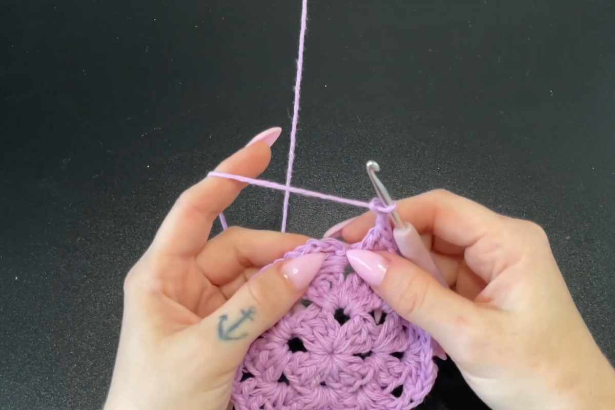 In this project, you’ll work with beginner-friendly granny squares that involve basic stitches like double crochet and chain stitches.