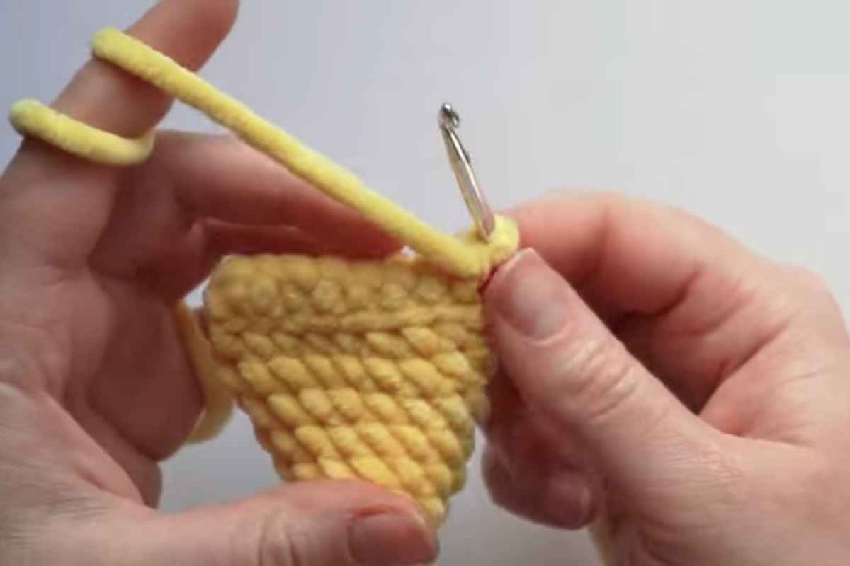 This soft toy pattern is suitable for beginners as it is very easy and explained step by step. You'll need chenille yarn, a 4mm crochet hook, a tapestry needle, a stitch marker, scissors, plus some stuffing too.