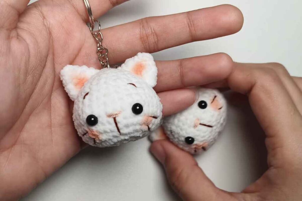Keychain or Bag Charm: Attach a small keyring to the top of the head to create a keychain or bag charm. The mini cat head will make a delightful accessory to carry around.