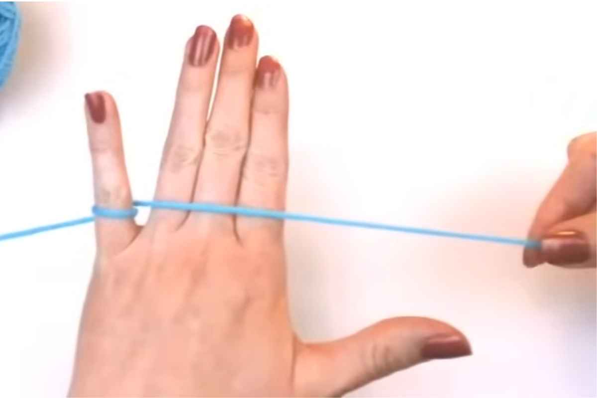 This method involves making a knot at the end of your yarn and then draping the yarn over your index finger, under your middle finger, and then over your ring finger.
