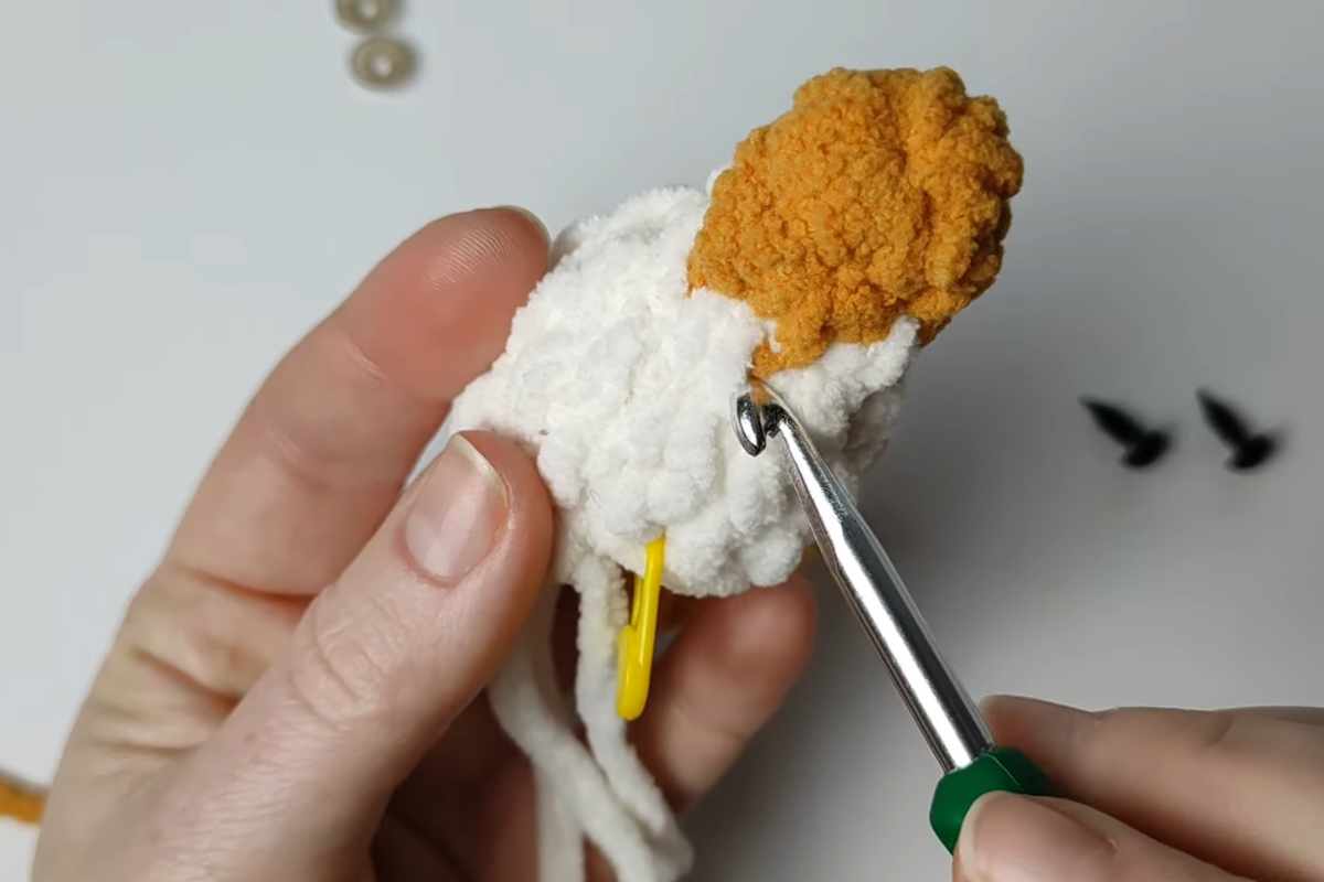 - Yarn: Choose a soft yarn in white, orange, and black for the goose’s body, beak, and eyes.