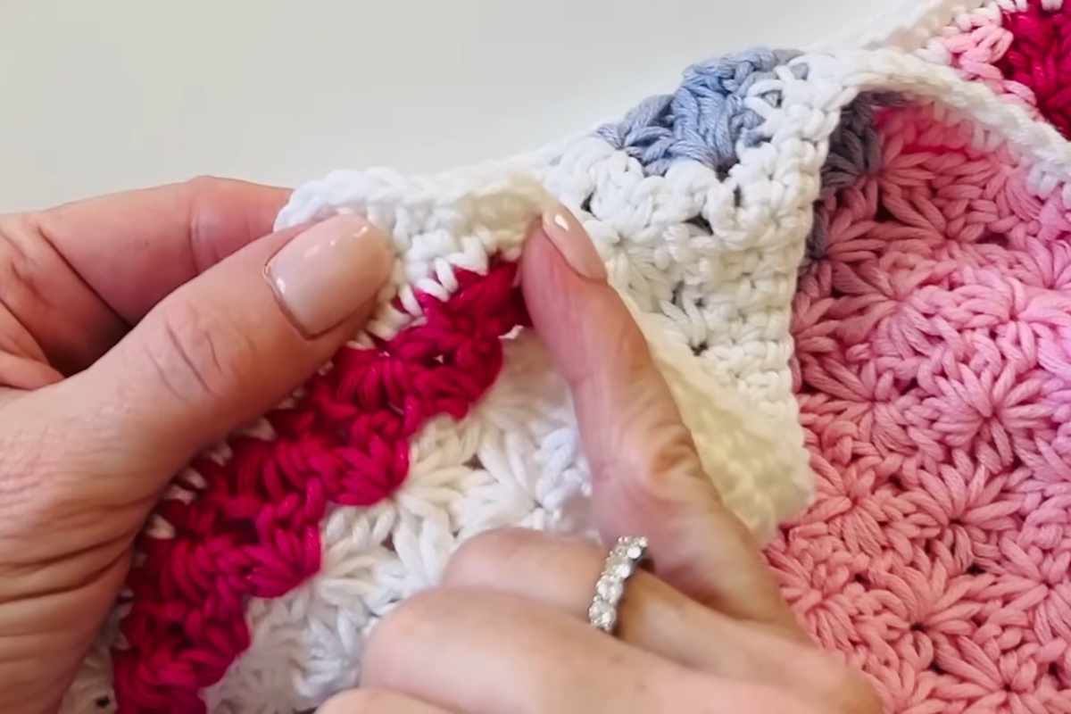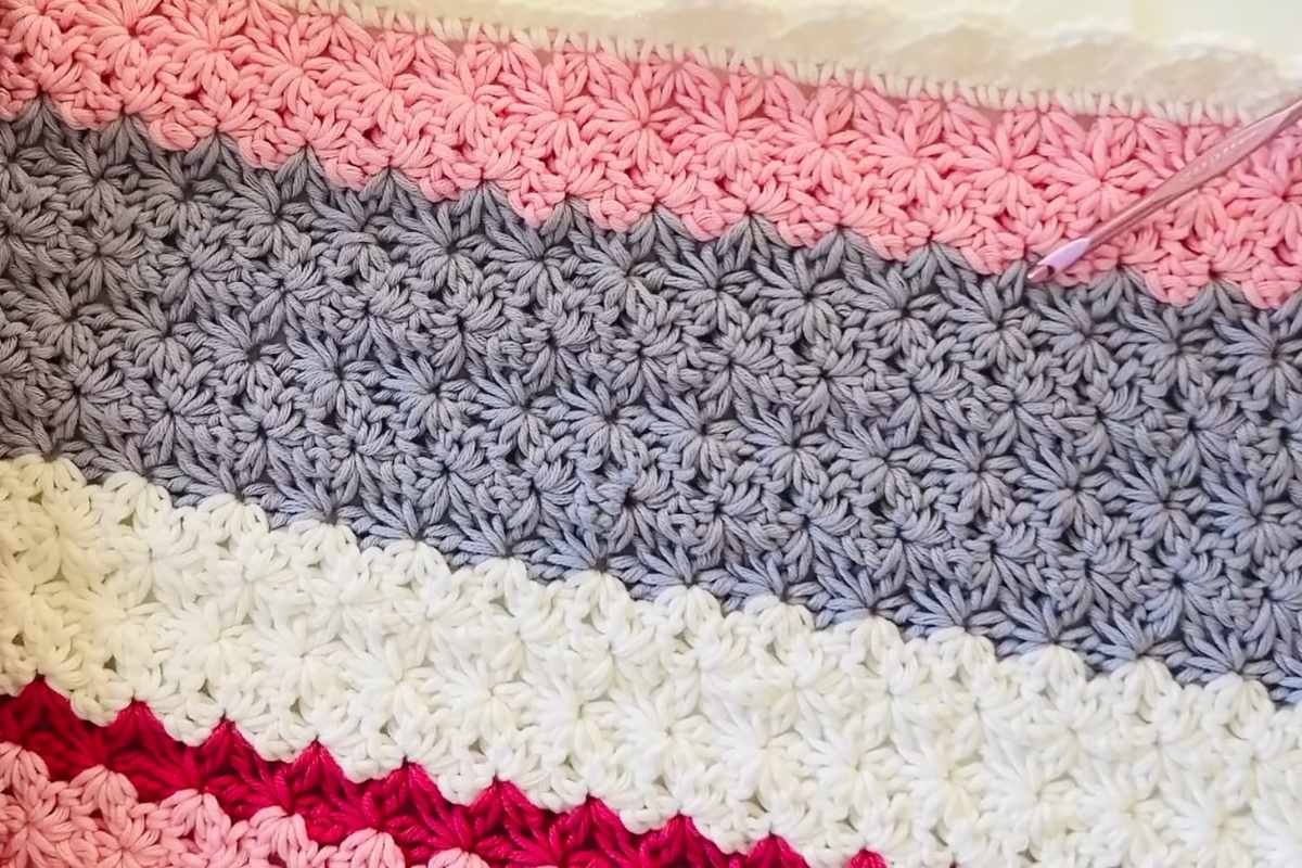 Learn to Crochet Mixed Stripe Flower Stitch Baby Blanket