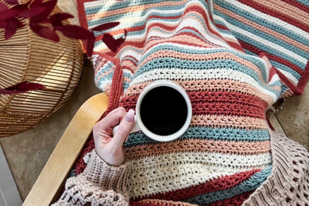 Star stitch creates a plush, textured fabric ideal for gifting. If you’ve been collecting easy crochet blanket patterns, this one’s a crowd-pleaser with just enough stitch interest to keep you engaged.