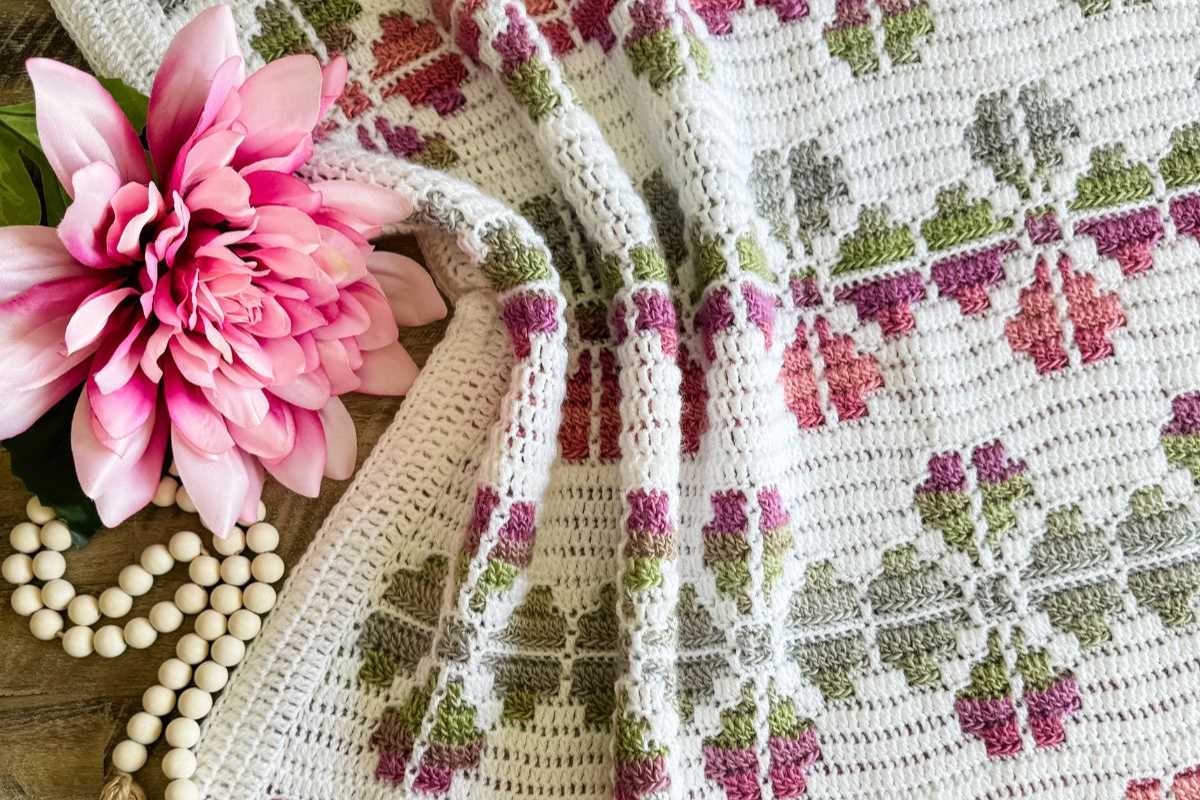 Florals meet geometric rhythm in this guided project. It’s ideal if you want unique crochet blanket patterns free that feel advanced yet rely on straightforward repeats.
