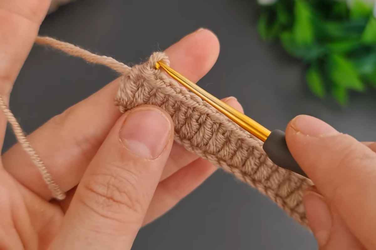 To complete the first row, you need to work the return pass. This step moves the loops from your hook onto the fabric to form the actual stitches.