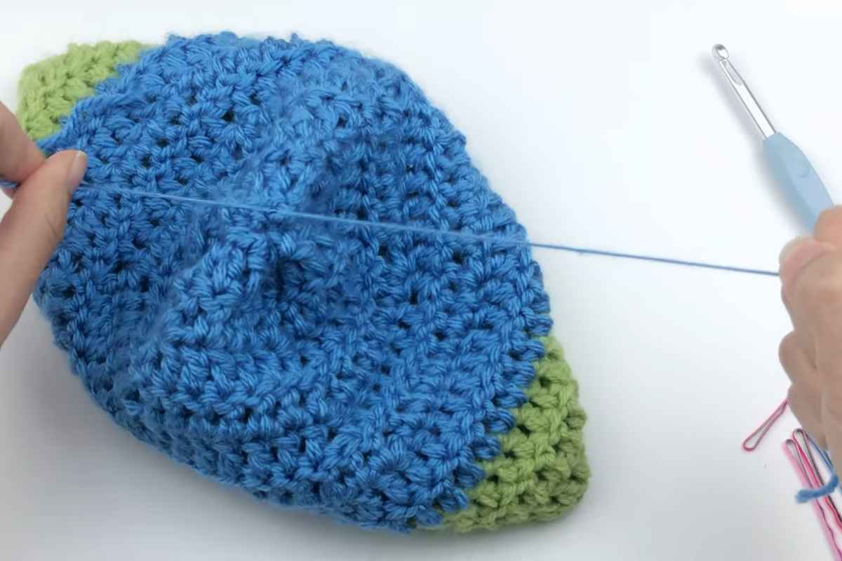 Keep your tension consistent throughout to maintain an even fabric. You can pause occasionally and try the hat on or measure it to make sure you’re on the right track.