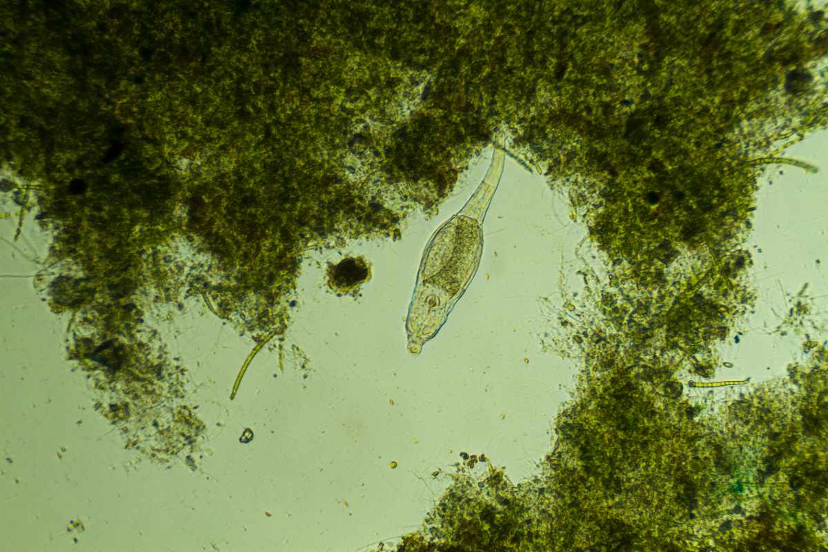 Its leaves form whorls along a central stem, with each leaf ending in small snap traps. These traps close rapidly when tiny prey, such as water fleas (Daphnia) or rotifers, touch the sensory hairs.