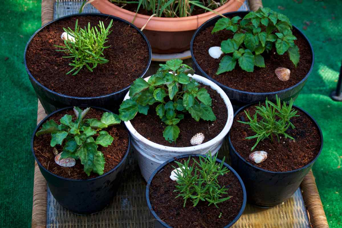 If you want a mixed container, keep plants with the same water needs together (e.g., rosemary + thyme + oregano). Save mint for its own container; it spreads aggressively.