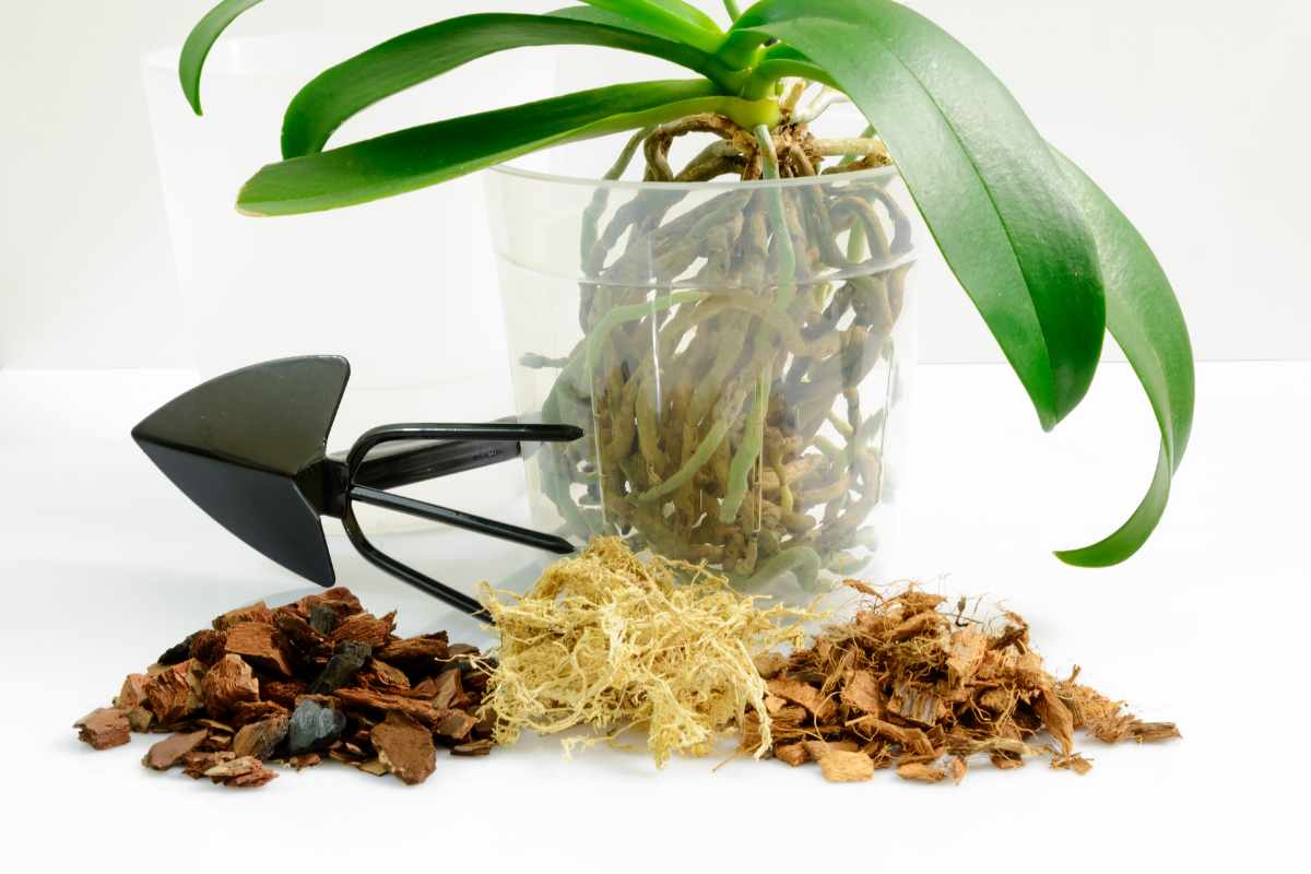 Unlike many common houseplants, orchids grow in a special medium such as bark, moss, or coconut husk rather than regular soil.