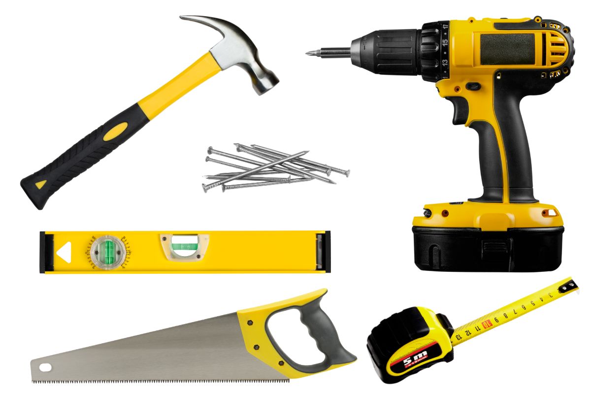 Tools: Hammer, nails, saws, drills, a level, and a tape measure.