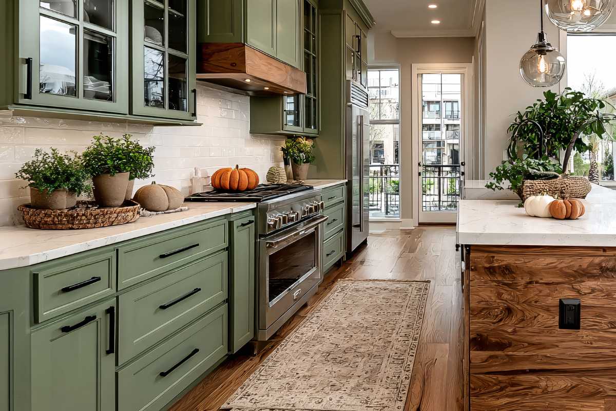 Looking for budget-friendly kitchen cabinets ideas? Paint the lowers only, swap hardware, and add a matching runner. Even modest updates can transform your Kitchen Aesthetic without a full renovation.