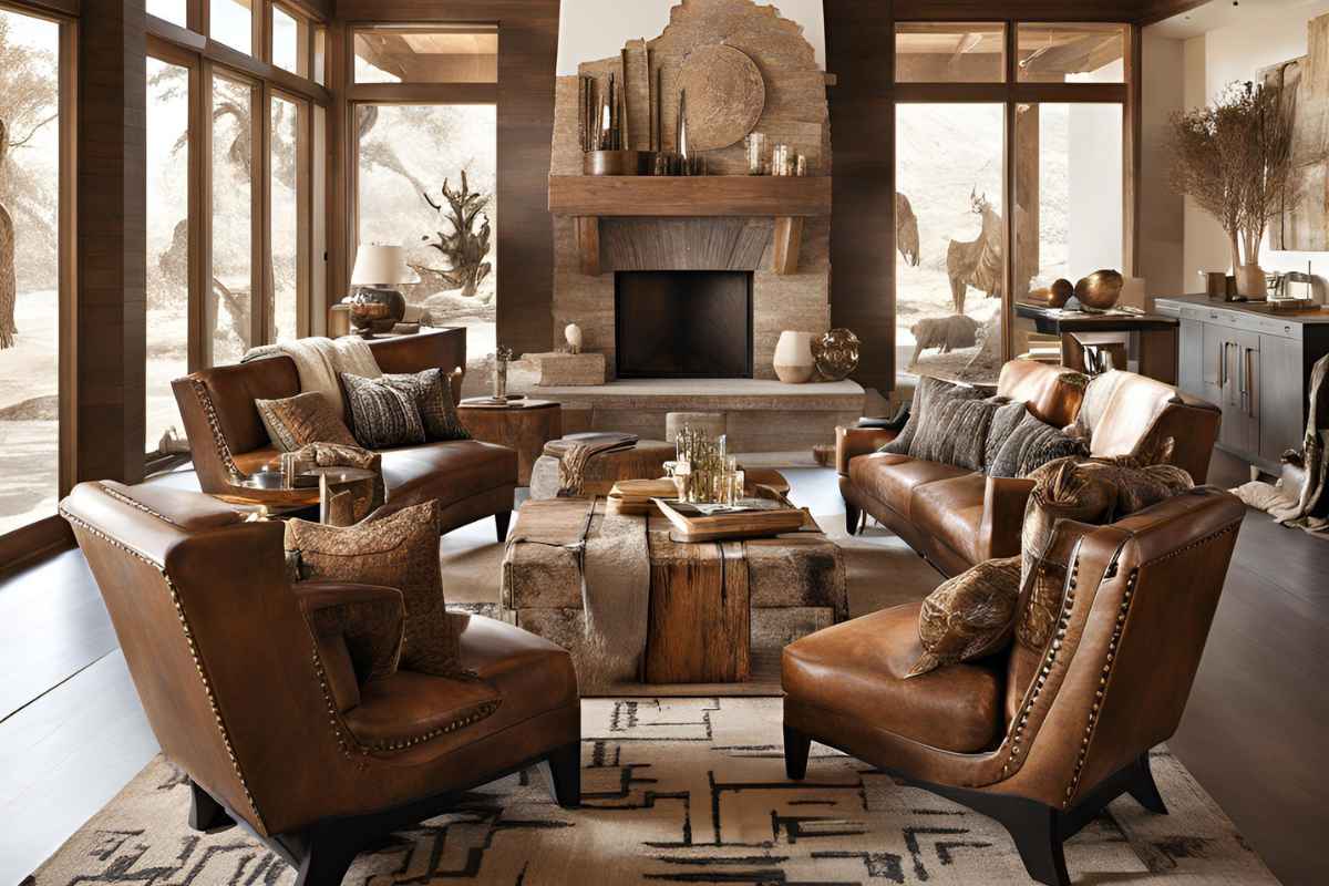- Choose sleek leather furniture in neutral shades like tan, brown, or gray.