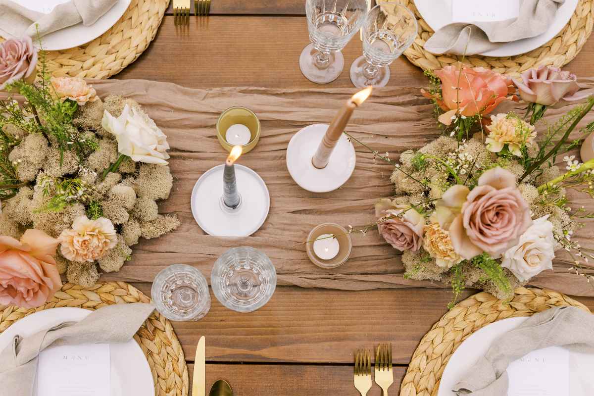 Opt for a lace tablecloth, a floral fabric, or a neutral linen to serve as the foundation for your tablescape. Napkins in complementary colors, tied with ribbon or lace, will add a cohesive and elegant touch.