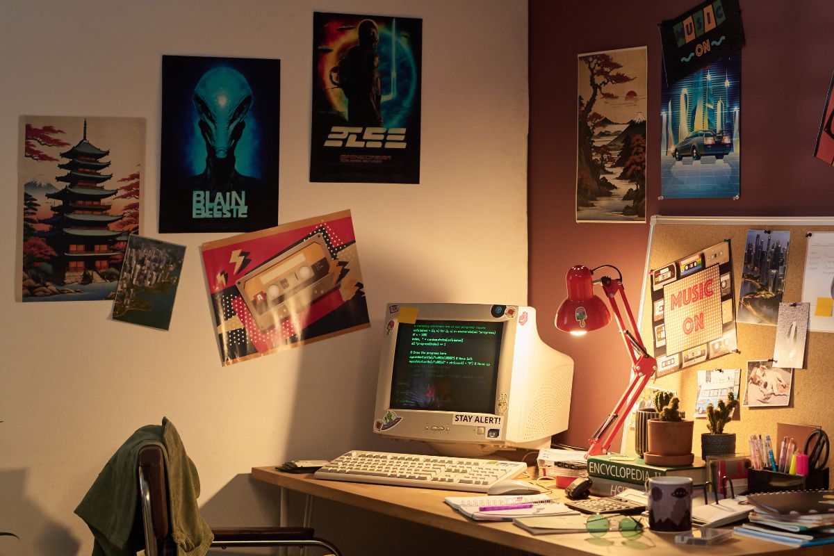 Try a gallery of cute room decor posters around your desk, or a single statement piece above the bed. Add a hanging banner to introduce texture and create a soft focal line across the wall.