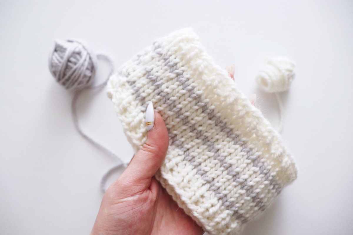 To achieve clean, crisp stripes, make sure to carry the unused yarn neatly along the inside of the headband to avoid loose strands.