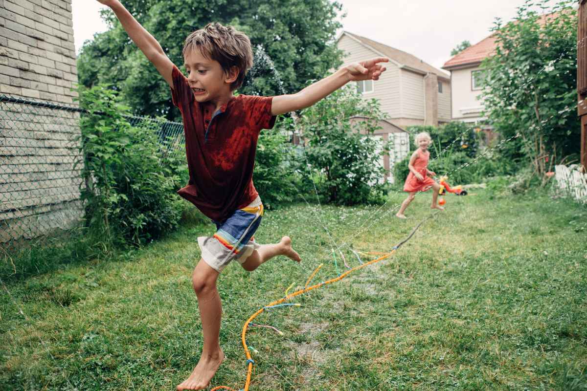A water play area encourages kids to be active, improving their physical health while keeping them cool during warm weather.