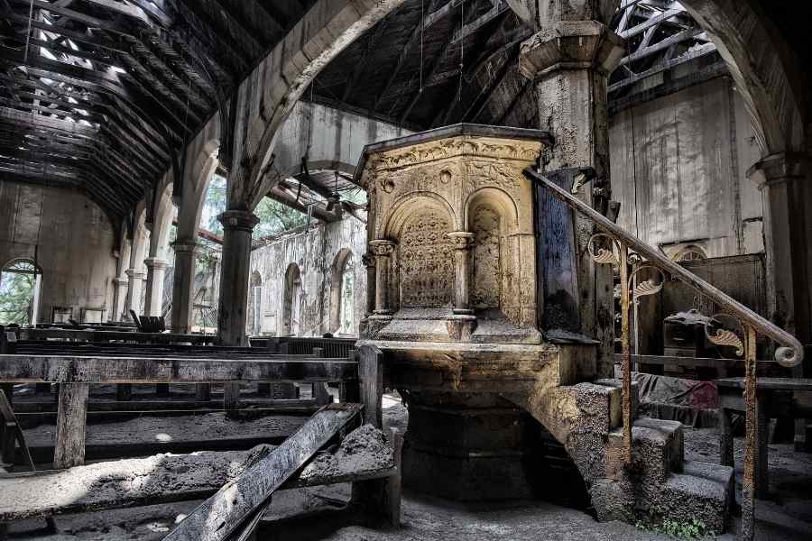 Visiting Plymouth is an unsettling experience - once-majestic Georgian buildings are in various stages of disrepair, most buried 12 meters below the ash and only the tops are visible.